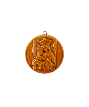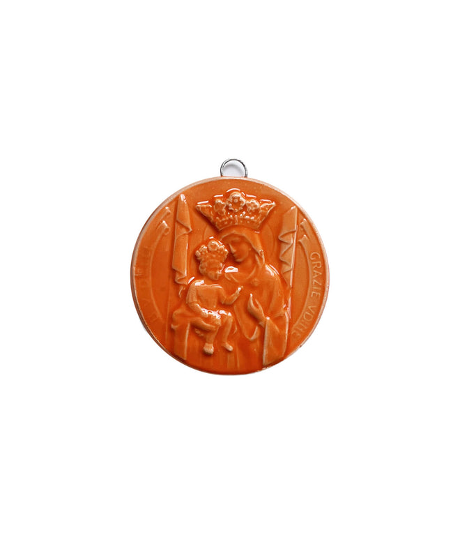 Decora la tua casa con il medaglione in ceramica smaltata della Madonna delle Grazie. Il medaglione è dotato di gancio in ferro sulla parte superiore e fornito con laccetto in gros grain.